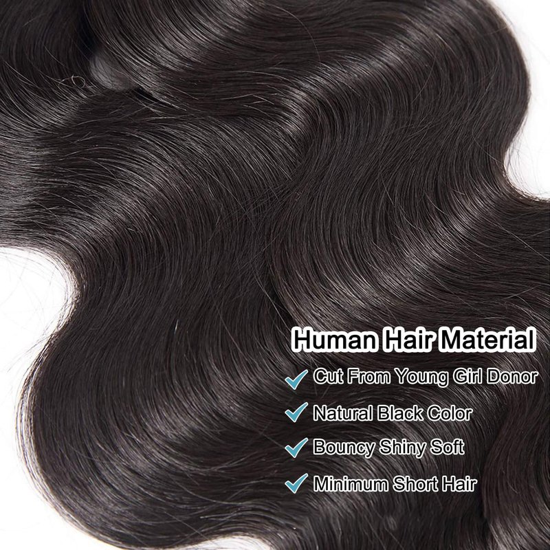 - 1.Frontal with bundles Hair Material:100% Unprocessed 10A Grade Remy Human Hair Bundles with Lace Frontal Body Wave Human Hair Extensions Cut from One Young Donor Directly--Silky,Soft,Tight and Neat, No Synthetic Hair or Animal Hair Mixed.Selling by 100% Human Hair Factory Directly