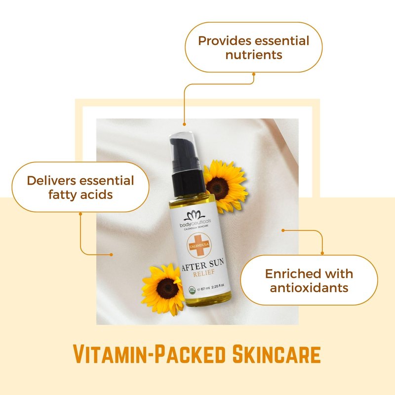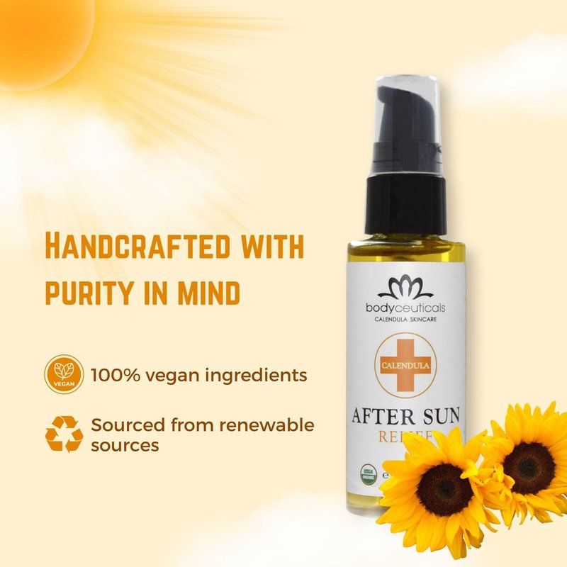 - Easy to Use: Apply BodyCeuticals Calendula After Sun Relief Oil generously to sun-exposed areas, massaging gently until fully absorbed. Use as needed to soothe and hydrate your skin after sun exposure.