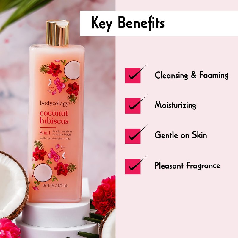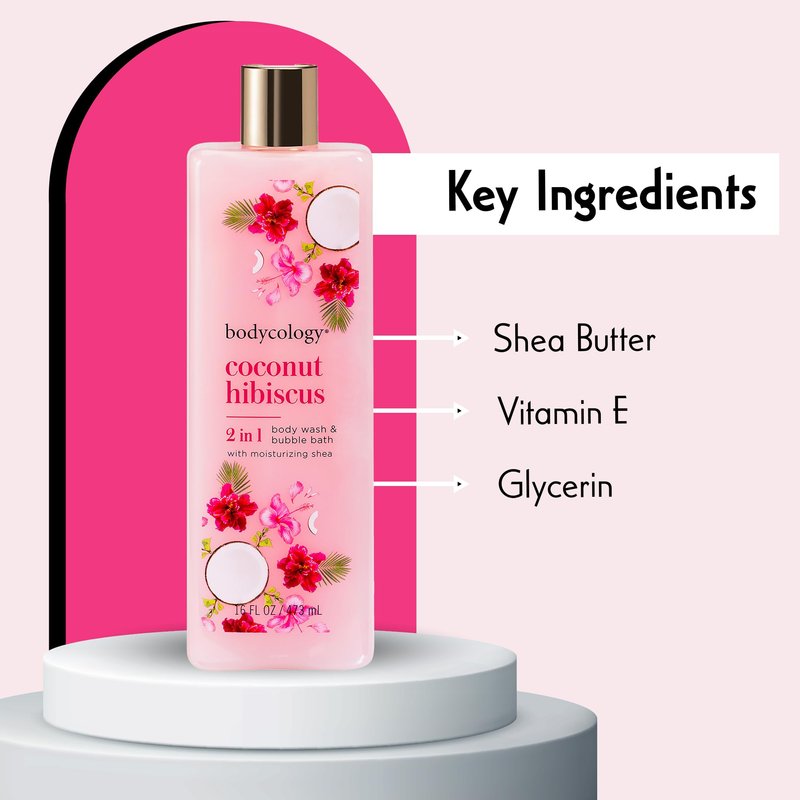 Bodycology Coconut Hibiscus Moisturizing Body Wash for Women, 16 Ounce