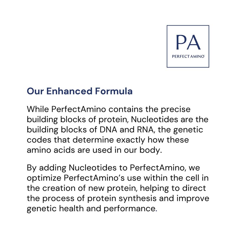 Perfect Amino now in Mocha Boost flavored powder with ZERO SUGARS! Many people know that protein is essential for optimum health, but most assume they are consuming enough from food. Almost everyone is protein deficient without realizing it – it plays out as a nagging injury that won’t heal in the athlete, or brittle bones in the menopausal woman, or constant colds in the child. Not getting enough protein may mean low hormones, or a low immune system and risk of disease. Enter PerfectAmino, an amino acid supplement that is 99% utilized by the body to make protein. No other form of protein comes close! The veggie sourced protein in PerfectAmino acts as an effective protein pill supplement for everyday tissue repair, increased energy levels pre-workout, and fast muscle recovery post-workout. The amino acids in PerfectAmino are derived from plant sources such as beans or peas and are pure, pharmaceutical-grade, crystalline protein pills produced in a cGMP Laboratory in the USA. Randomly & independently tested by Informed Choice / LGC for professional sport. This product contains all Nucleic Acid Building Blocks with BCAAs, EAAS, Lysine, Phenylalanine, Threonine, Methionine, and Tryptophan.
