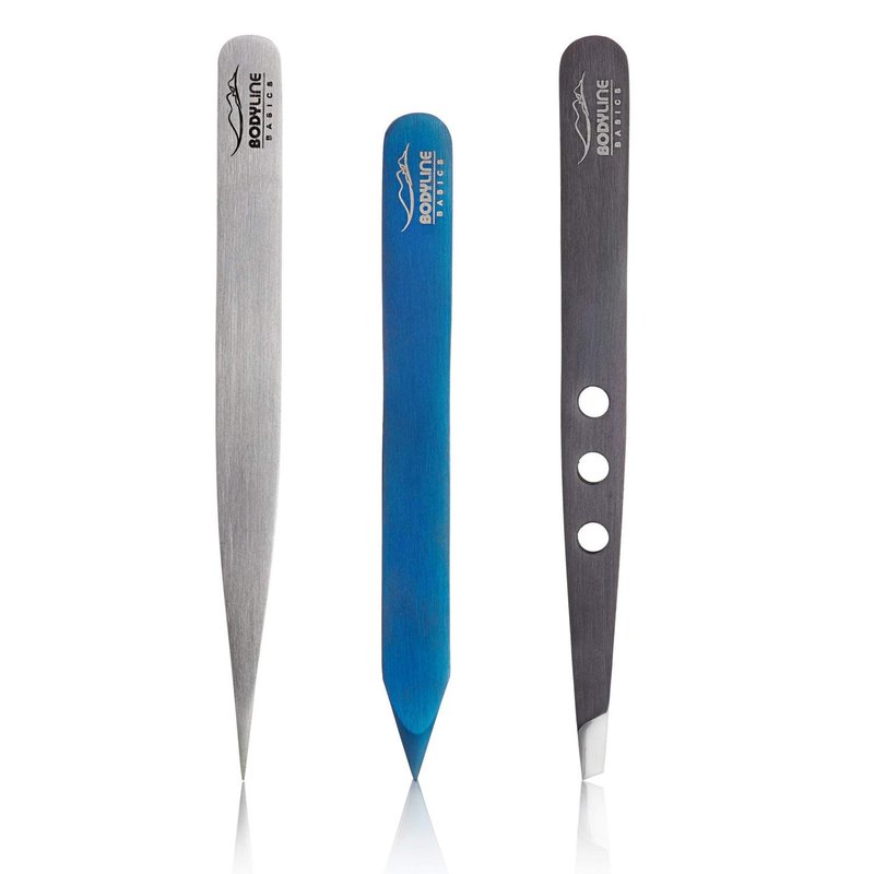 Bodyline Basics Tweezer Set for Eyebrows Chin Hair Splinters and Ingrown Hairs - Precision Tweezers for Facial Hair Removal