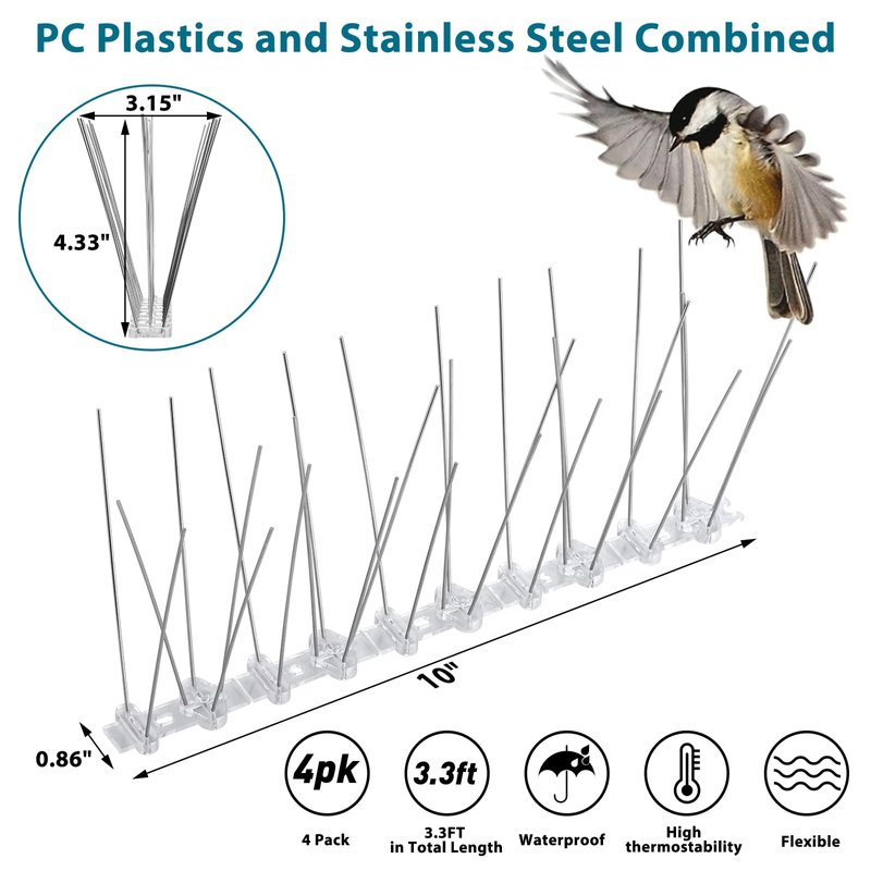 - Package Includes: Each package comes with 4 packs of stainless steel bird nails, which can be used to cover about 3.3 feet.