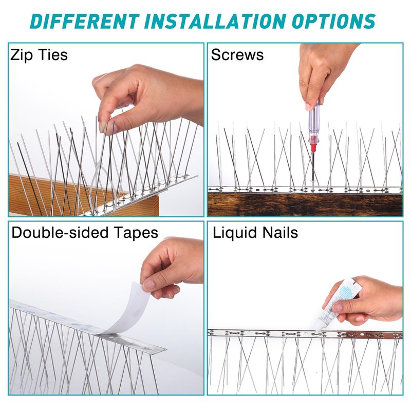 - Easy to Install: Bird repellent devices is provided with holes to facilitate the fixation of bird nails on a flat surface with double-sided tape, cable ties, screws, etc.
