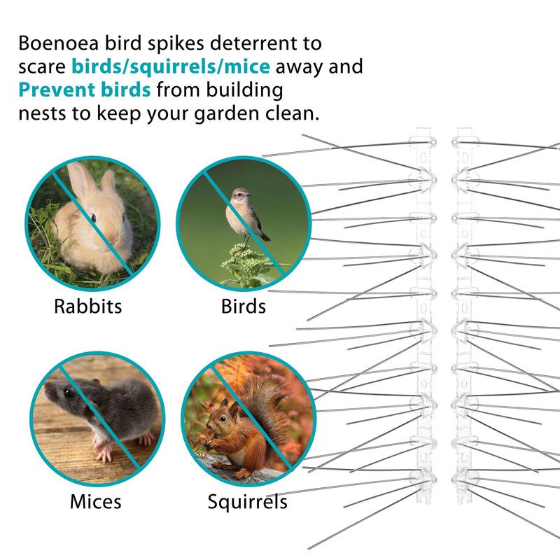 Boenoea Bird Spikes, Bird Repellent Devices Outdoor of Stainless Steel for Fence Windowsill Roof, Bird Deterrent Spikes for Small Bird and Squirrels (3.3FT)