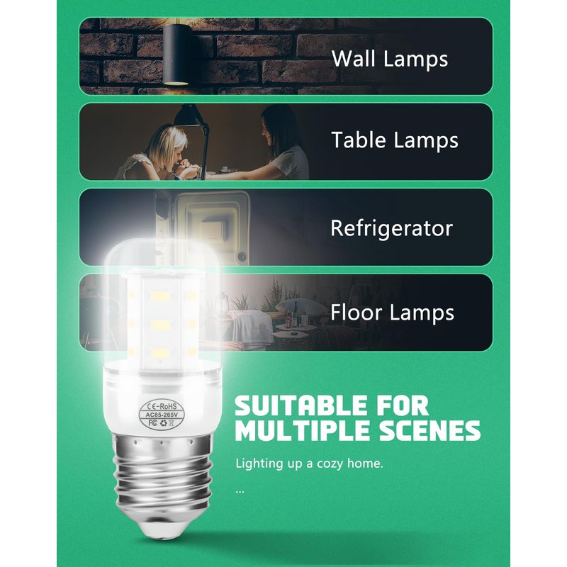 PART NUMBERS: FFSS2615TP3, LFSS2312TE0, CRSE233TB0, FFSS2625TE2, FFSS2625TE3, FFSS2625TE0, FFSS2625TE1, CRSE263TD0, LFSS2312TD0, FFSS2615TS0, LFSS2312TD1, LFSS2612TD1, FFSS2615TS1, LFSS2312TD2, LFSS2612TD0, FFSS2615TS2, FFSS2315TS1, FFSS2615TS3, FFSS2315TS0,FFSS2315TS3, FFSS2315TS2, FFHX2325TP0SUTIABLE MODELS: 5304511738 led lights for refrigerators replace PS12364857 AP6278388 4584444 PS11767930 compatible Frigidaire Kenmore Electrolux Crosley etc. Adaptive model KEID34L KEL3418L LFSS2612TE0 FSFF2612TE0 FFSS2625TSO FFSS2325TS0 FFSS2315TSO LFSS2312TPO LFSS2612TP2 LFSS2312TF2 LFSS2312TF0 CRSE233TS0 FFSS2625TS1 LFSS2312TE0 etc.Tip: If you are not sure if your machine model is compatible, you can always contact us, our service team is online 24 hours a day to answer your questions.SPECIFICATION: 5304511738 LED Refrigerator Light Bulb Wide voltage design, AC 85-265v, power:3.5w, E27 Screw, fits for most refrigerators.IT is equivalent to 30W-50W ordinary light, brighter and more power saving.HIGH QUALITY: Our LED refrigerator lights are crafted from premium materials and undergo multiple power-on lighting and aging tests to ensure they meet rigorous standards. We subject each product to over 2,000 tests before shipping it out, so you can rest assured that you're getting a reliable and high-quality product that has undergone strict quality control measures.CUSTOMER SERVICES: We guarantee to always provide the best quality product. Please rest assured to buy, If you have any problem when using it, our customer service will solve your problem within 24 hours. We're dedicated to ensuring you have a great shopping experience.