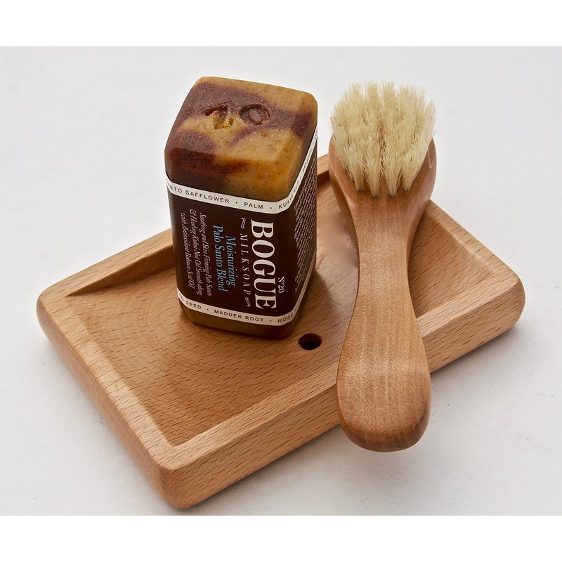Bogue Goat Milk Soap - No.20 Moisturizing Palo Santo Gift Set– Soothing and skin firming Palo Santo & healing Kukui Nut smooth with antioxidant Babassu oil with facial brush and soap dish