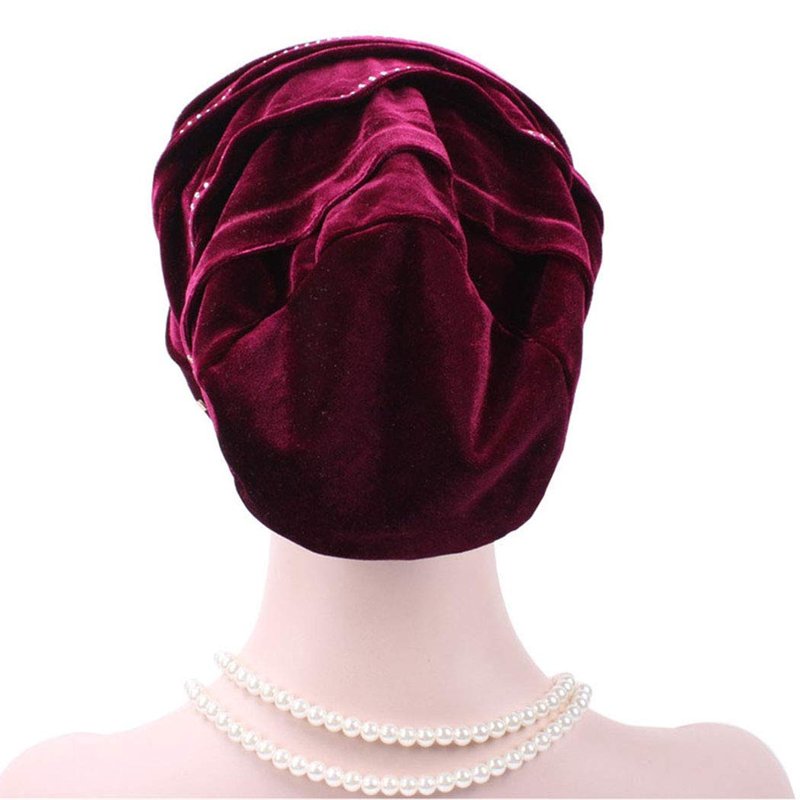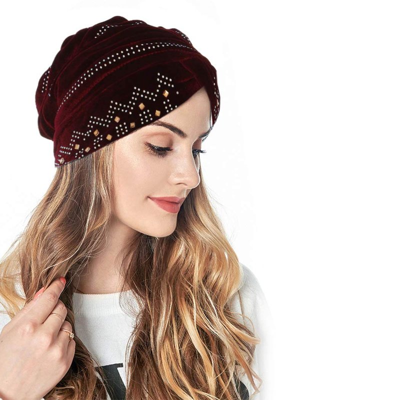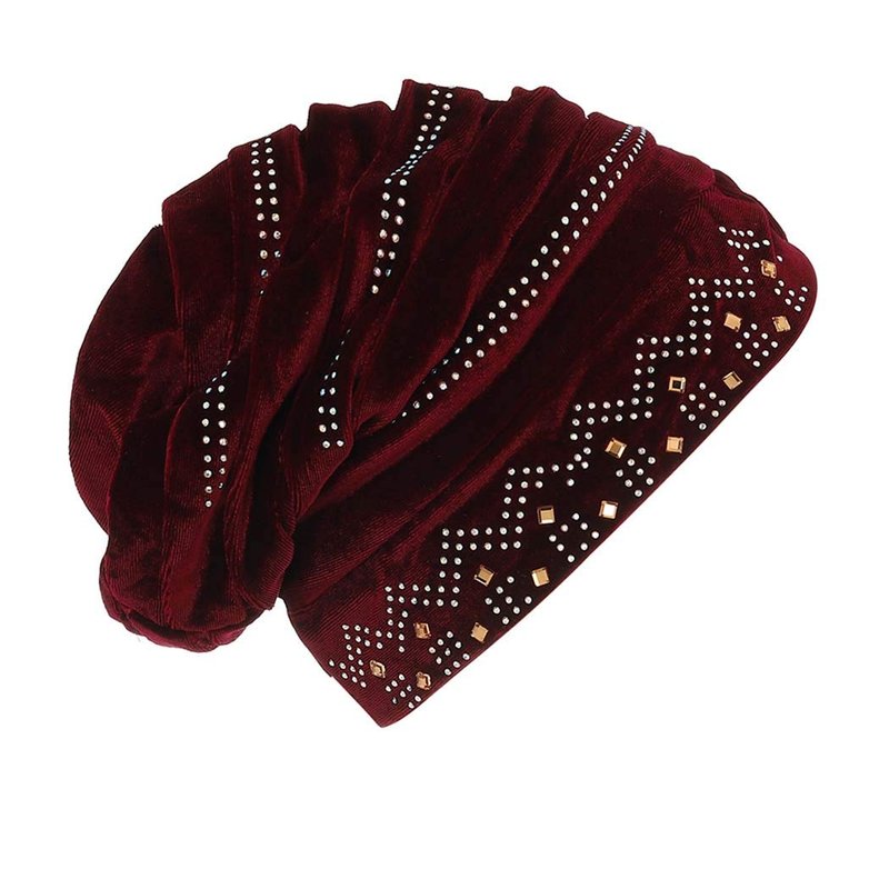Bohend Vintage Rhinestone Turban Sleep Headwrap Wide Sparkly Sleep Turban Headband Crystal Muslim Hat Headwear Beanie Pre-Tied Bonnet Velvet Hat Cap Hair Wrap For Women and Girls (Wine red)