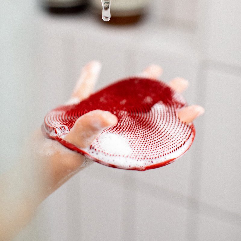 We’ve created a new way to lather up. The Flat Body Scrubber's soft and silicone-like bristles remove dirt and grime while gently exfoliating for smooth, clear skin. It’s made from durable material unlike loofahs and washcloths, replacing far less often. Just add your favorite soap or body wash and go.