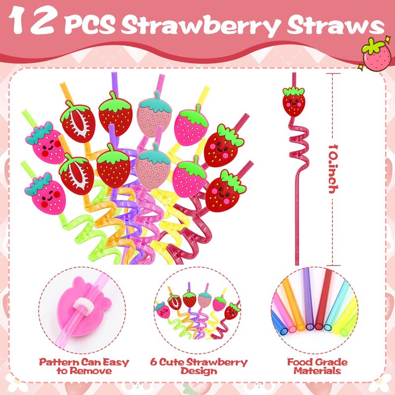 - 【Charming and Playful Designs】With vibrant and playful strawberry designs, this set is sure to delight your guests. The straws feature fun twisty patterns and cute strawberry decorations, while the stamps and stickers come in various fruity designs. Perfect for adding a cheerful and whimsical touch to your party