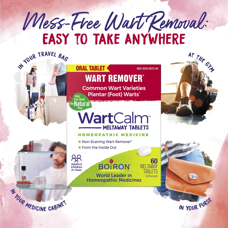 For a better way to remove warts, start from the inside out. WartCalm is a convenient oral option for pain-free wart removal. Theres no need to contend with messy liquids, freezing, or patches that can sting, irritate, or damage skin. WartCalm uses plant-based and other pure active ingredients that work from within to remove common warts on the body and plantar warts of the feet.* Simply melt the unflavored tablets in your mouth each morning and evening until warts disappear.