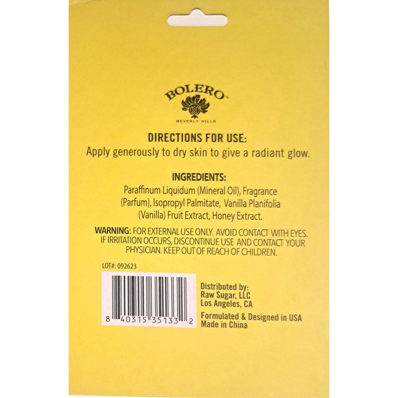 Bolero Beverly Hills Nourishing Body Oil - Vanilla Bean & Honey for all skin types 1fl oz./29.5ml