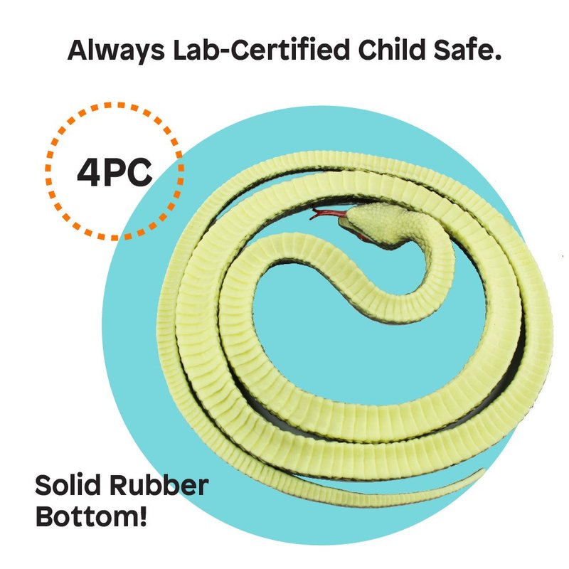 - WHAT'S INSIDE: Each snake measures 52" long, featuring vibrant colors, rich detail, and lifelike textures. This set includes 4 realistic soft plastic snakes with a coiled shape and flat belly for stability on various surfaces.