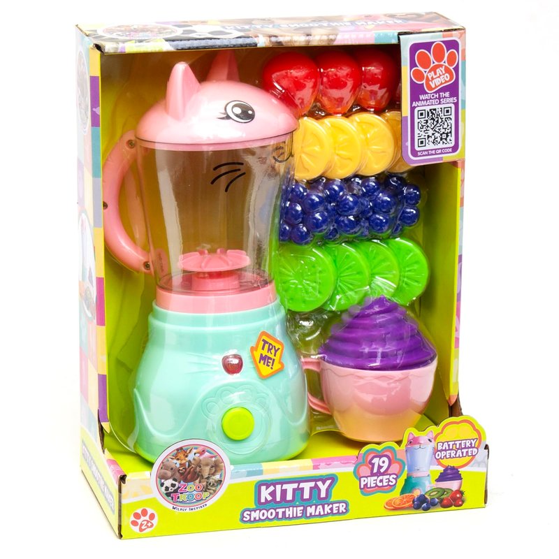 Boley Zoo Troop: Kitty Smoothie Maker - 19 Pieces - Animal Themed Kitchen Playset, Battery Operated Toy Appliance, Food & Cooking Accessories, Kids Ages 2+