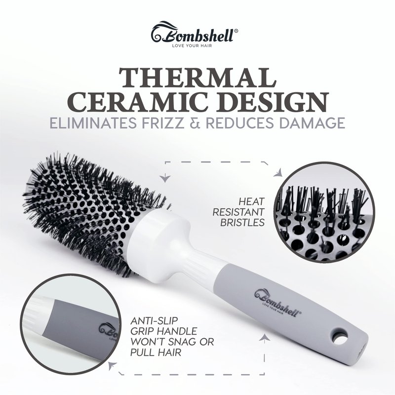 Bombshell Ceramic Round Brush — Pro Ultra Ceramic Thermal Round Hair Brush with Rubber Handle, Round Brush for Blow Drying, Curling, and Styling 1.7"