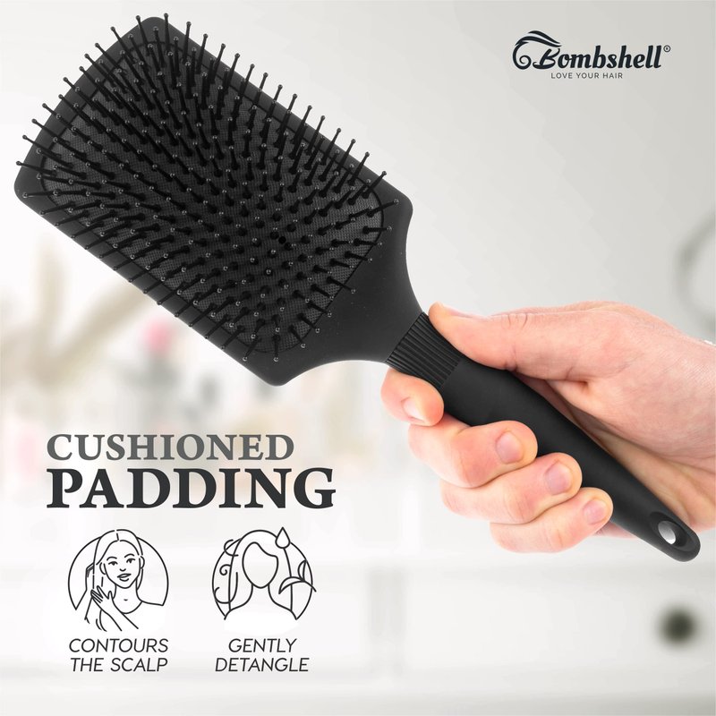 - PREMIUM BRISTLES – The paddle brushes have the finest quality nylon bristles that gently glides through your hair while minimizing pulls and breakages. Whether you have curly, wavy, straight, frizzy, or textured hair, Bombshell has you covered by bringing you healthy hair through effective care.