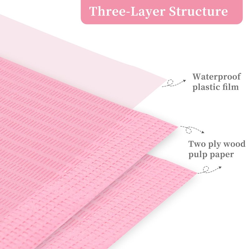 BOMOQING 125PCS Disposable Nail Art Table Mat, Waterproof Nail Tips Art Table Towels Mat, 3 Ply Nail Napkins for Acrylic, Nail Art Mat Paper Sheet, Nail Tips Art Waterproof Pad for Salon (Pink)