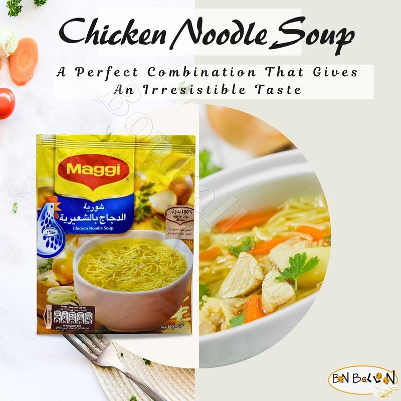 bonballoon Maggi Chicken Noodle Soup Spice Mix Seasoning Chicken Poultry Baharat Middle East Eastern Arab Arabian Gulf Herb Herbs Light Meal And Appetite Halal ( 4 Pack = 9.31oz 264gm )