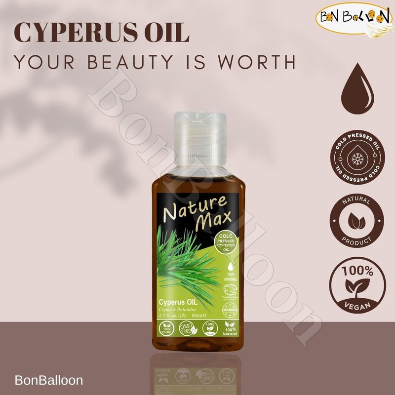 bonballoon Nature Max Cyperus Oil Natural Cold Pressed Undiluted Premium Pure For Skin Care Halal (1 Pack = 2.70 oz / 80 ml) زيت السعد حلال