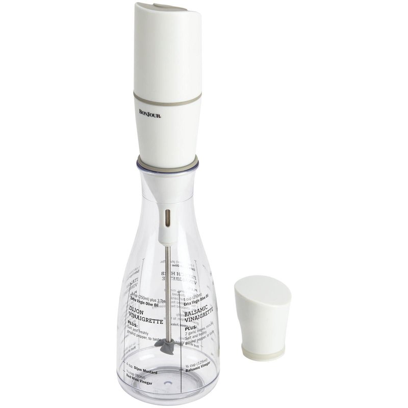 BonJour Chef's Tools Plastic Salad Dressing Carafe and Handheld Mixer, 12-Ounce, Salad Chef, White/Clear