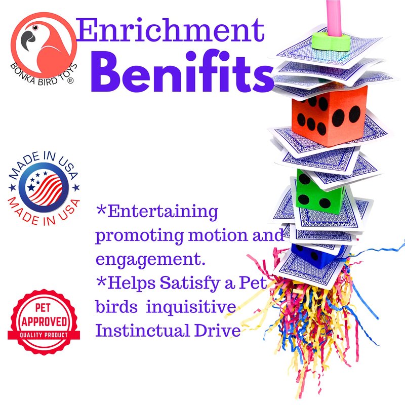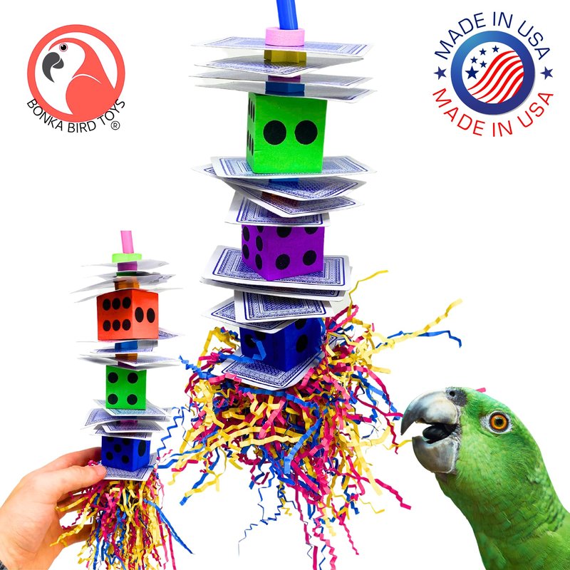 Bonka Bird Toys 1474 Poker Dice Chew Forage Shred Medium Parrot Cage Toy, Conure, Quaker, Caique, and Similar Breed Sizes