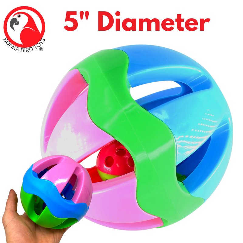 Bonka Bird Toys 2008 Huge 5" Plastic Ball Parrot Foraging Foot Talon Macaws Cockatoos Cats Small Dogs DIY Infant Baby Cages Cockatoo