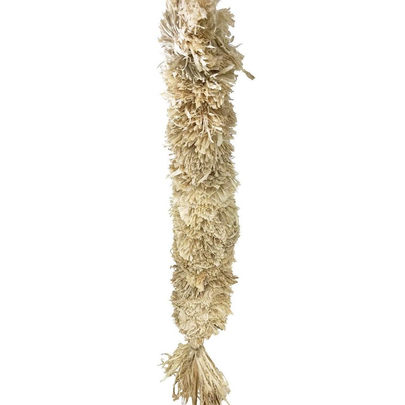 The 2040 Husky Climb will give your pet bird a fun and exciting way to climb in their aviary or cage. 2040 is made from soft corn husk and will great on your pet's beak and feet. The top of the Husky Climber has a creatively shaped wooden hook. This hook connects to 2040 with a small piece of rope. The rope goes through the entire length of the climber and gives the corn husk support. From the top to the bottom there is a roll of soft corn husk that is super easy for your feathered friend to grab onto, pull and climb. At the bottom of 2040, the rope emerges and comes to a loop where a piece of frayed corn husk is looped through. The corn husk on the bottom has long strands hanging down. The toy is very light and easy for your pet to manipulate. As with all toys from Bonka Bird Toys, 2040 is made from 100% bird safe material. The 2040 measures about 14 inches long by roughly 2 inches wide.