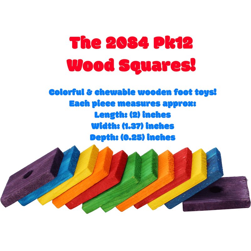 - The 2084 Pk12 Wood Squares from Bonka Bird Toys are colorful and straightforward chewy foot toys.