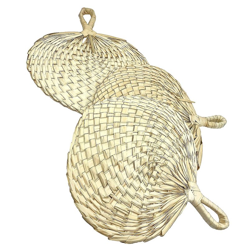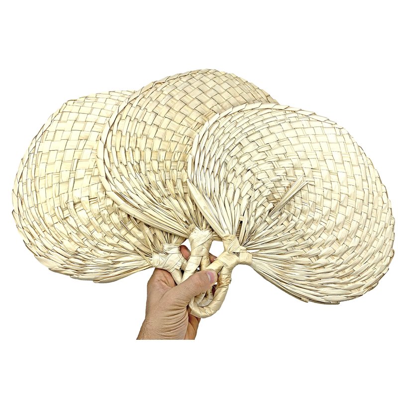 - Includes three large palm leaf fans.