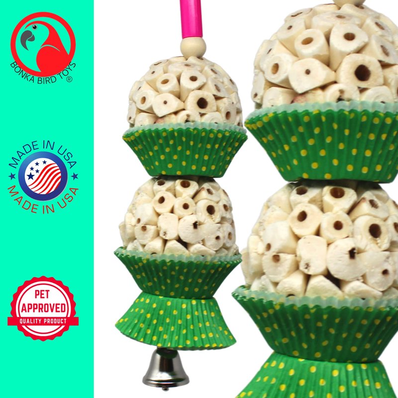- The 2365 Two Mini Cakes from Bonka Bird Toys is a colorful and shreddable bird toy with lots of natural Sola material! This bird toy has (2) natural sola balls for delightful chewing.