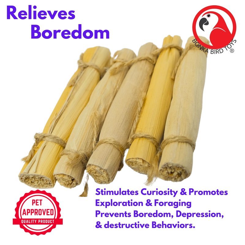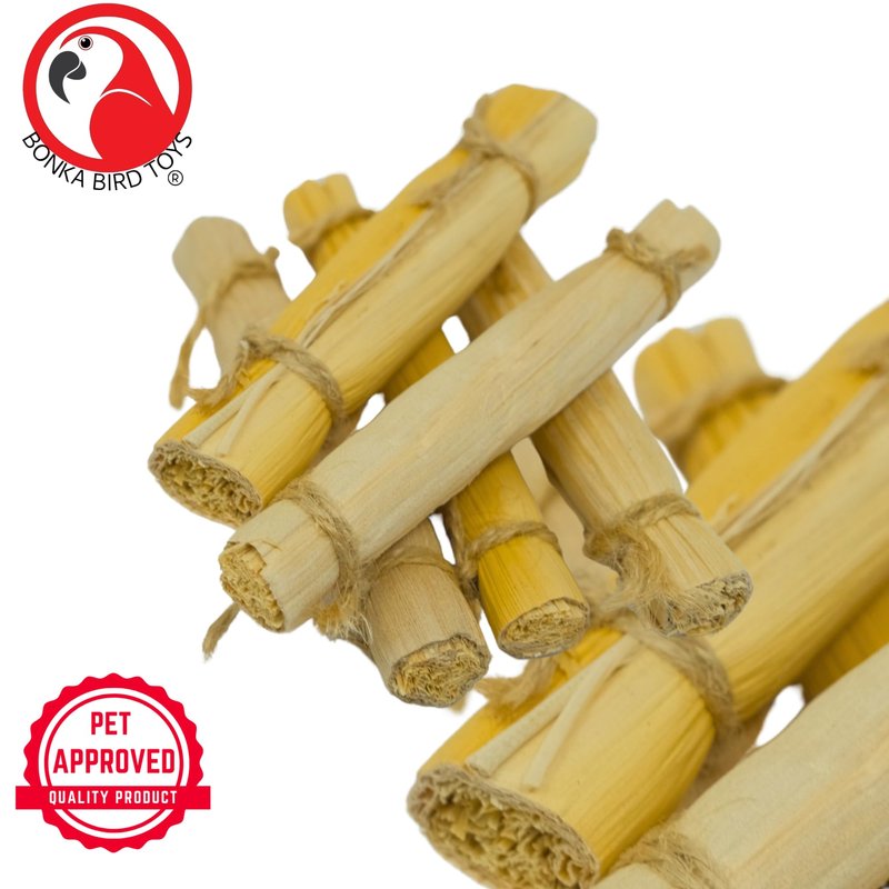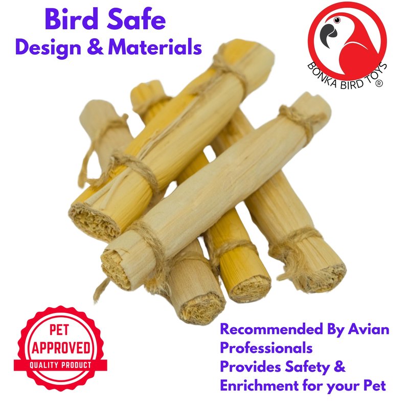 Bonka Bird Toys presents the 2375 PK5 4-inch Banana Leaf Sticks, designed to inspire natural play and foraging behaviors in your bird. These sticks are crafted from harmless, all-natural banana leaves, making them a safe and fun addition to your bird's toy collection. Perfect for DIY projects or as standalone play items, each stick measures 4 inches in length and 0.8 inches in diameter, weighing approximately 2 ounces per pack. The natural materials ensure your bird can chew and play safely, promoting mental and physical well-being. These sticks are versatile and can be used to create custom toys or to enhance existing ones, providing endless creative possibilities. Ideal for parakeets, cockatiels, lovebirds, conures, and any small to medium-sized bird, the 2375 PK5 4-inch Banana Leaf Sticks are a must-have for enriching your pet's environment and reducing boredom.