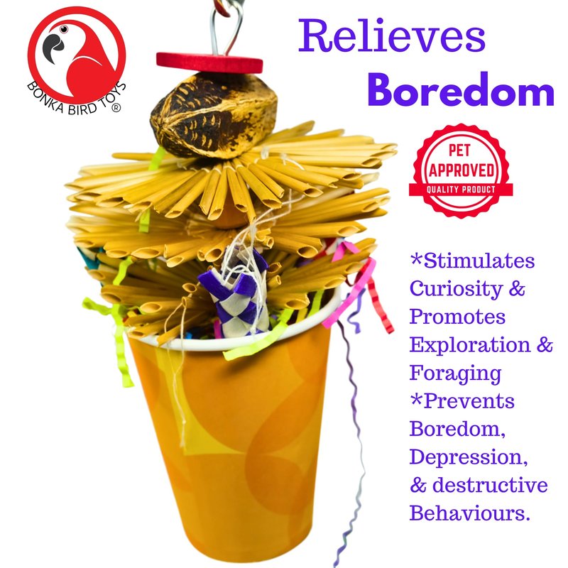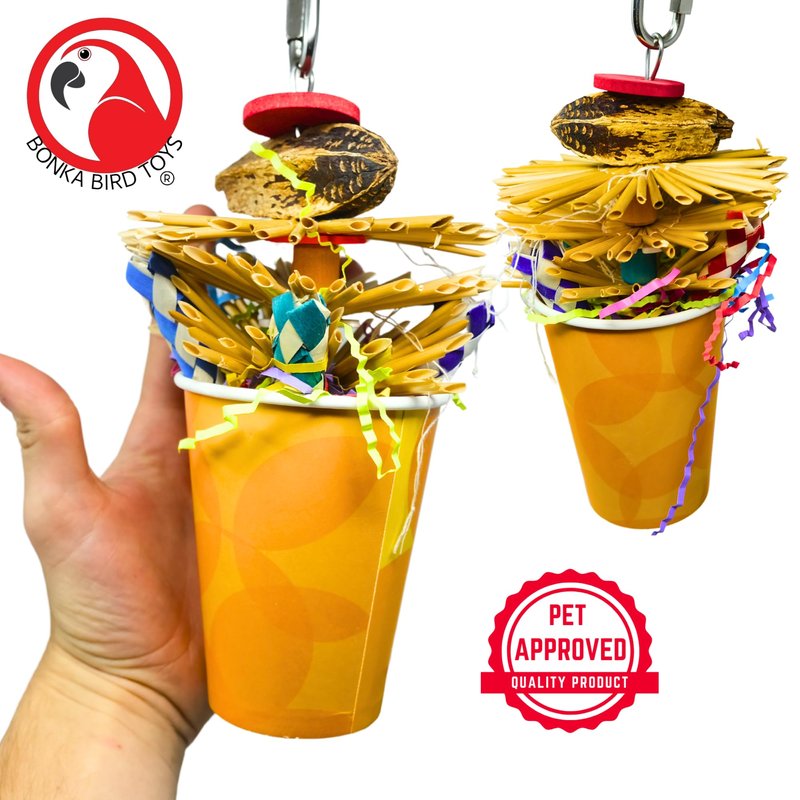 Bonka Bird Toys 2641 Party Cup Chew Shred Forage Medium Parrot Cage Toy, Conure, Ringneck, Pionus, and Similar Breed Sizes