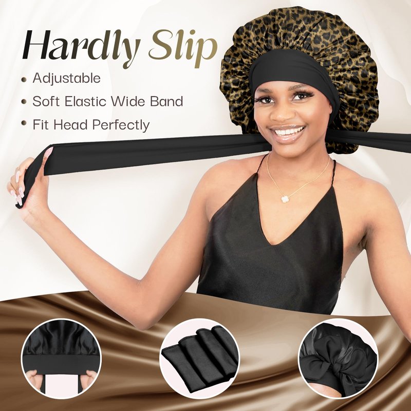 BONNET QUEEN Silk Bonnet for Sleeping Women Hair Bonnet REVERSIBLE Double Layer Satin Bonnet Tie Bonnet Sleep Satin Hair Wrap Night Cap For Curly Hair Leopard