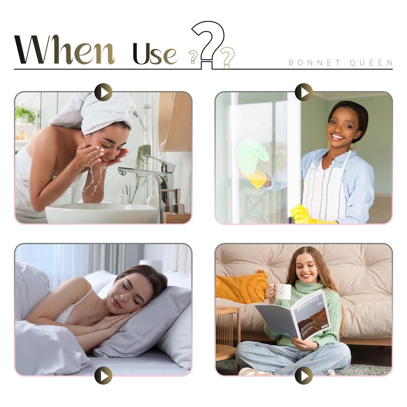 - 【𝐒𝐭𝐲𝐥𝐢𝐬𝐡 𝐚𝐧𝐝 𝐖𝐢𝐝𝐞 𝐔𝐬𝐞】 you can use soft wide Band on the Hair Satin Bonnet to make a beautiful bow on forehead or side, make you unique and style; useable many occasions, Cosmetic, Shower, Washing, Cooking, Sleeping, Housework, Makeup, Gym, Running, Yoga,etc.