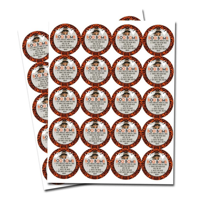- Cocoa Bomb Overload: Hot cocoa bombs are all the rage this year! Giving some out as gifts and want your packaging to stand out? Designed by a talented mom, these fun stickers feature Halloween ghosts and haunted house, plus all the detailed cocoa bomb instructions to fit perfectly on a package. These are great for making your hot chocolate bomb gift packs extra special for your friends & loved ones! Amanda Creation. Original design by Amanda Creation.