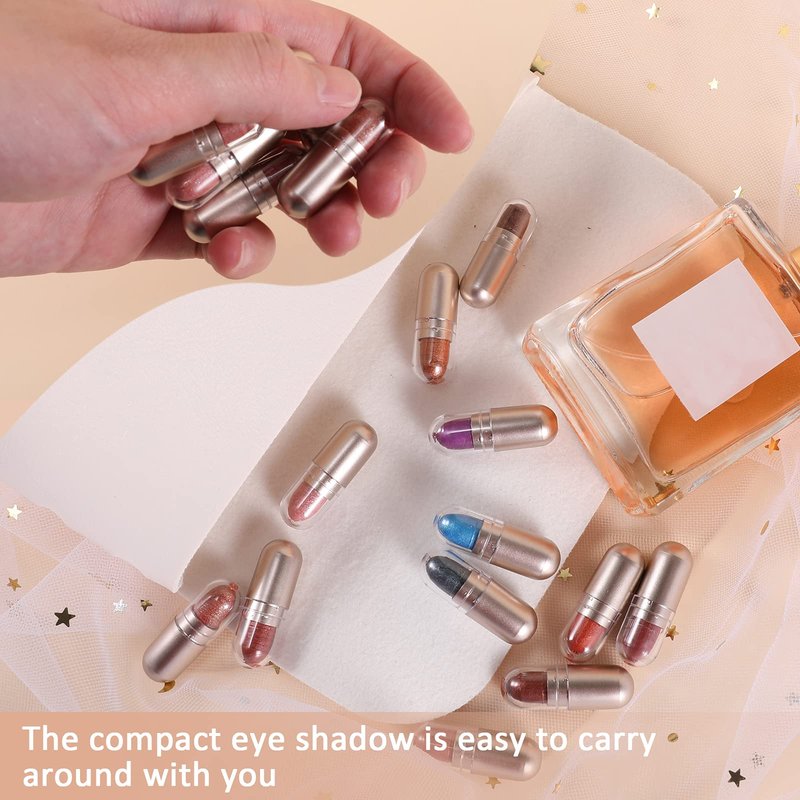 - 【12 Colors】Our glitter eyeshadow palette comes in 12 colors and can be easily colored. The capsule shape construction allows you to apply makeup directly.