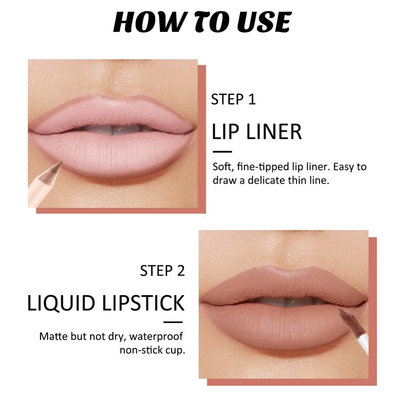 - 2 Pcs Lip Liner Pencil Set: Lip pencil and matte lip color, could be used alone or stacked. For longer lasting colour, you can fill in your lips with the lip liner before lipsticks for added colour to your lip makeup and create a different lip makeup effect.