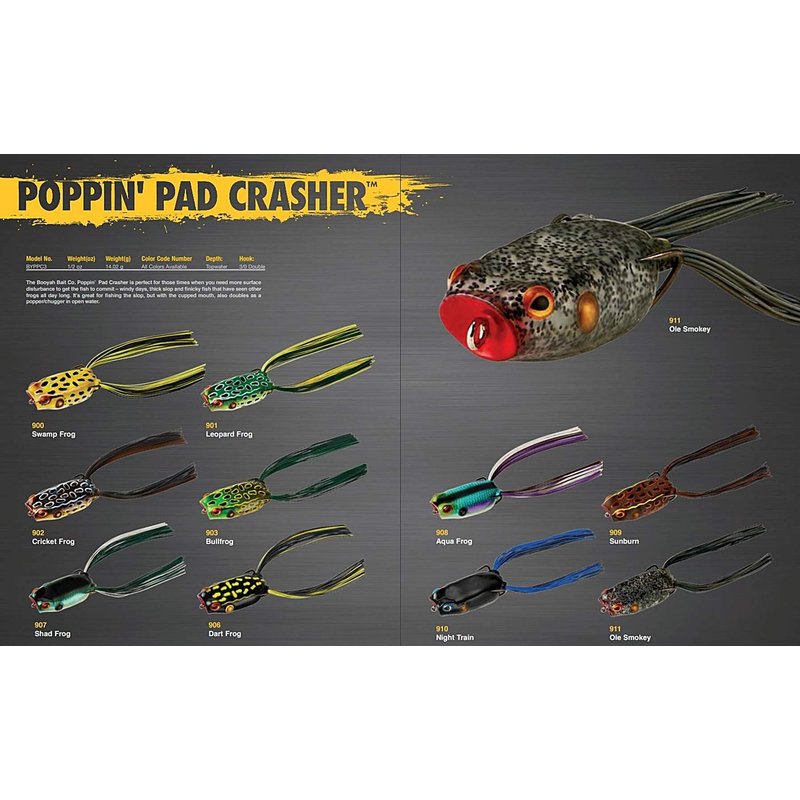 - Windy days, thick slop and finicky fish that have seen other frogs all day long still will take the different action of the Poppin' Pad Crasher