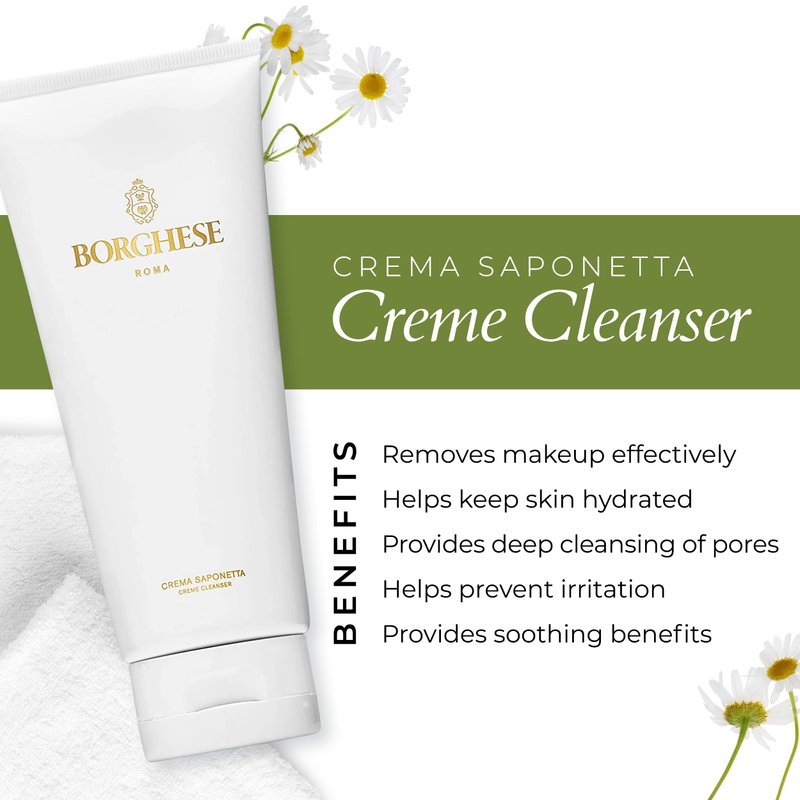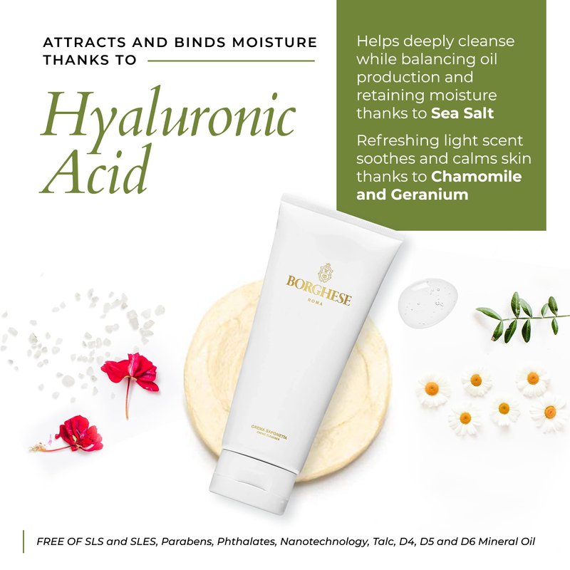 Borghese Crema Saponetta Creme Cleanser - Cream Cleanser Face Wash with Hyaluronic Acid, Gentle Face Cleanser Exfoliating Face Wash, All Skin Types