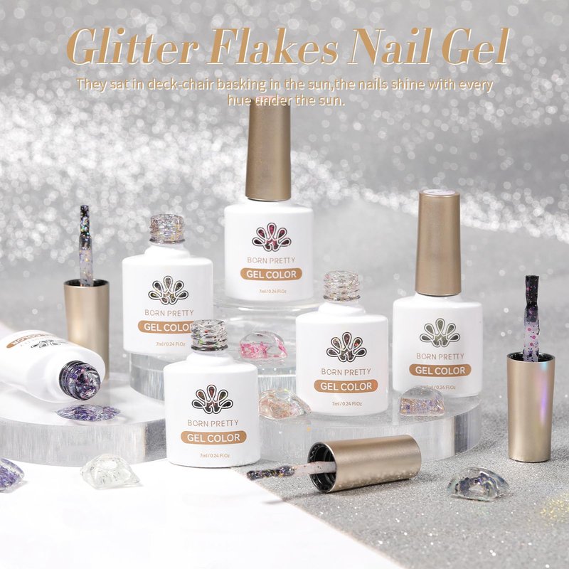 Born Pretty Glitter Sequins Gel Nail Polish Sparkly Shiny Pink Yellow Blue Green Gel Nail Polish Set Soak Off U V Nail Gel Valentine's Day Gift Collection Nail Art Manicure Varnish Kit 7ML 6PCS