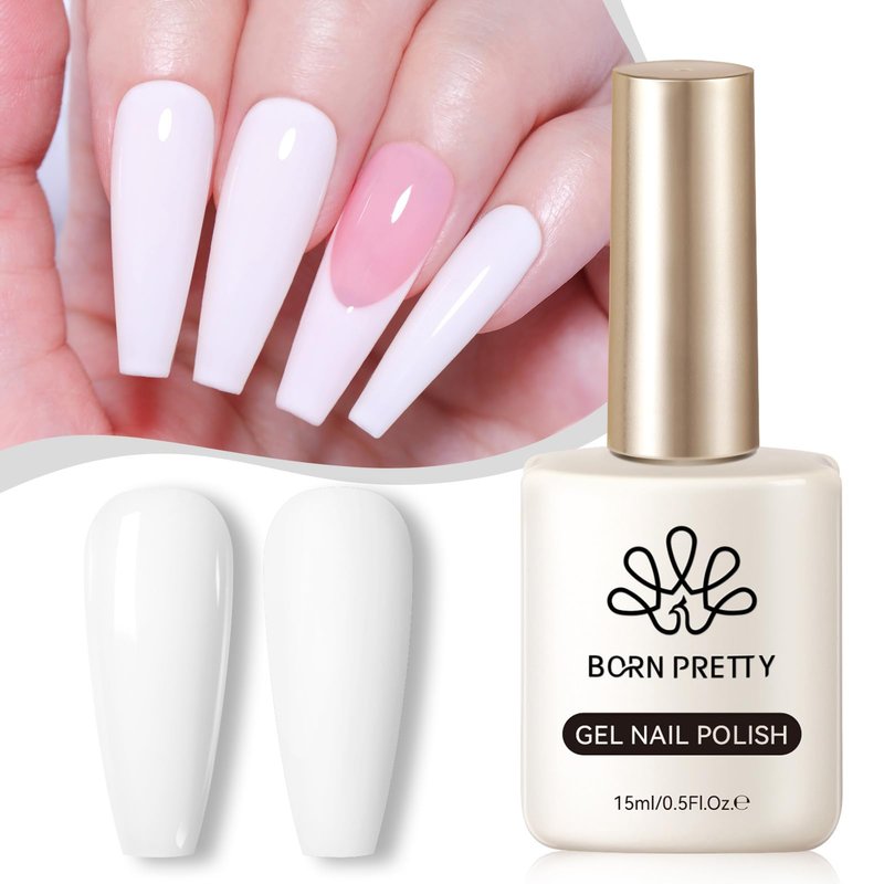 Born Pretty Hema-Free Gel Nail Polish, 15ml White Color Soak Off U V LED Gel Polish Nail, French White Wedding Tips Nail Art DIY Manicure at Home