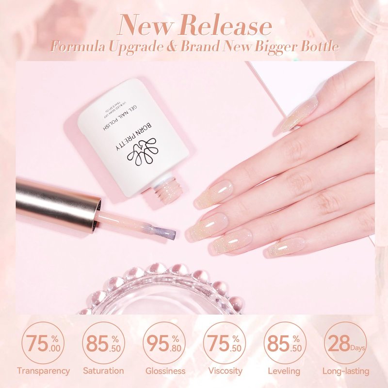 BORN PRETTY Jelly Gel Nail Polish Jelly Glitter Nude Pink Gel Polish Holographic Shimmer Nude Pink Natural Translucent Soak Off Hema-Free Gel Polish Nail Art DIY 15ML