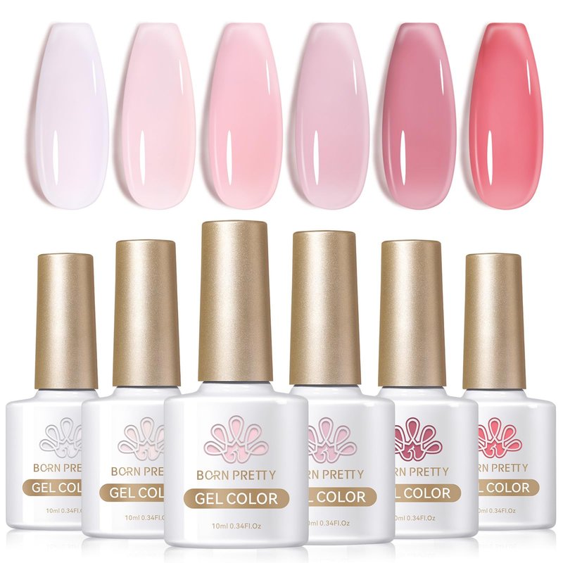 Born Pretty Jelly Gel Nail Polish Sheer Pink Gel Nail Polish Crystal Transparent Milky Gel Polish Kit Nail Art Varnish Collection Gift Set 10ML 6PCS