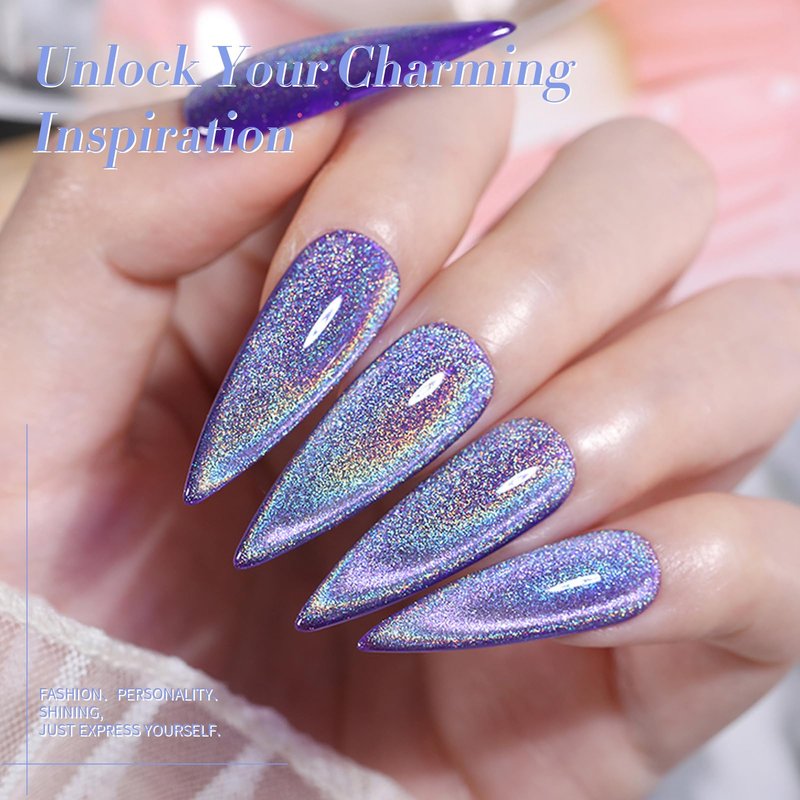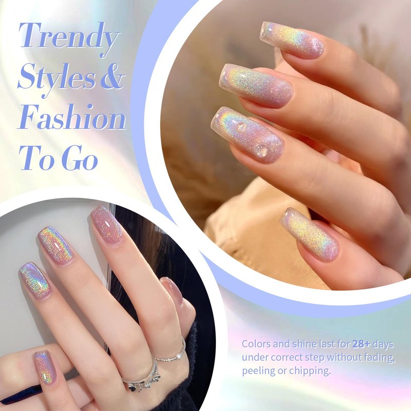- PACKAGE CONTENTS:1 Bottle cat magnetic gel nail polish gift set .This shinny holographic glitter is beautiful and glossy on all skin tones,turning them into expensive-looking,jwwelry-like accessories.