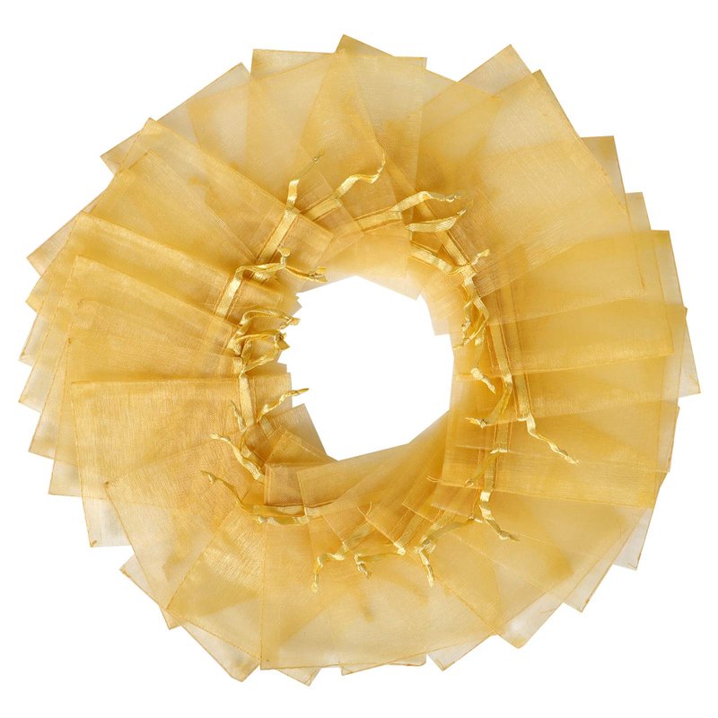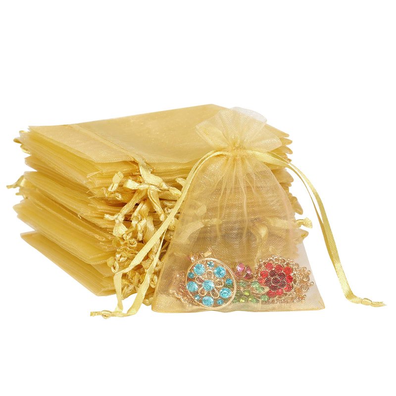 Boshen 100/200PCS Organza Gift Candy Sheer Bags Mesh Jewelry Pouches Drawstring Bulk for Wedding Party Favors Christmas (3" X 4"(100PCS), Gold)