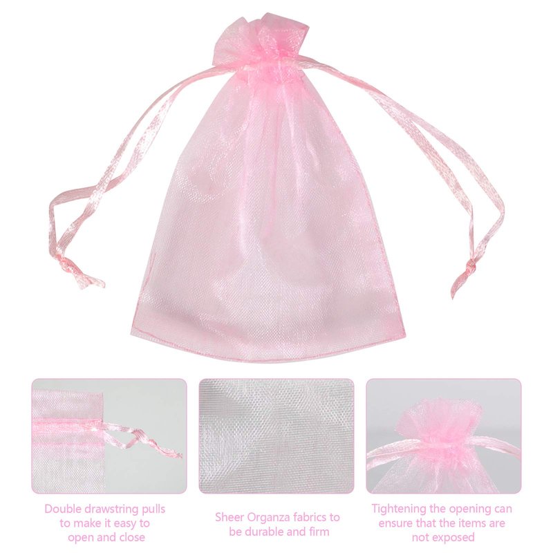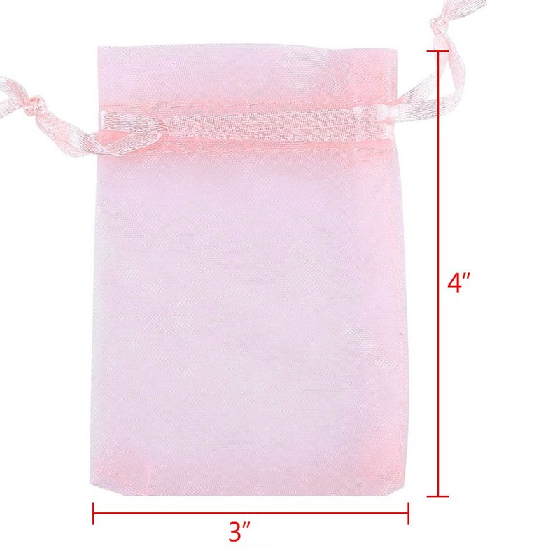 Boshen 100/200PCS Organza Gift Candy Sheer Bags Mesh Jewelry Pouches Drawstring Bulk for Wedding Party Favors Christmas (3" X 4"(100PCS), Pink)