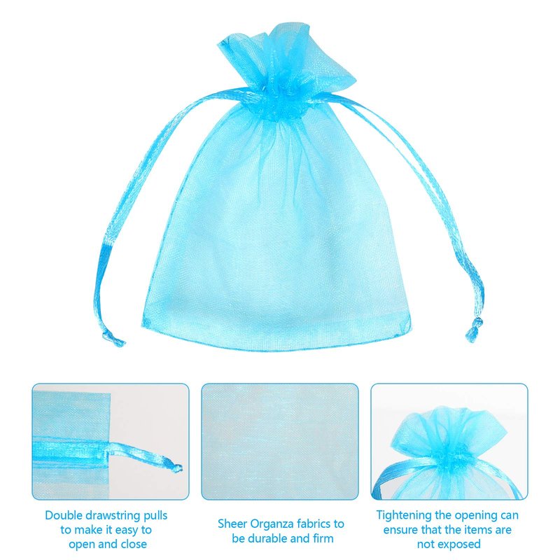 Boshen 100/200PCS Organza Gift Candy Sheer Bags Mesh Jewelry Pouches Drawstring Bulk for Wedding Party Favors Christmas (3" X 4"(100PCS), Teal Blue)