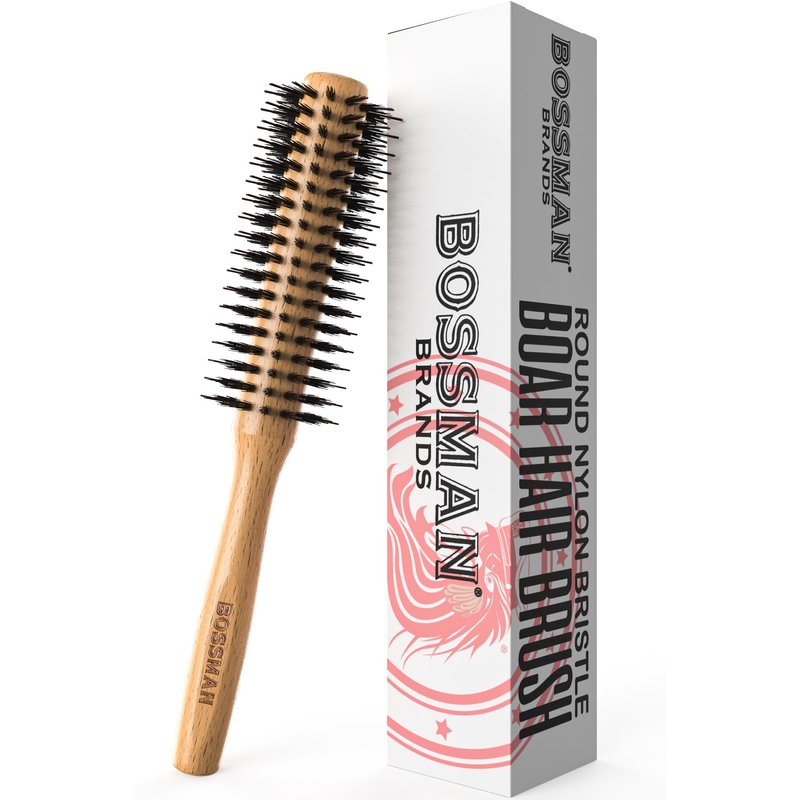 Bossman Boar & Nylon Bristle Hair Brush - Hair Styling Christmas Gifts for Dad, Husband, and Brother - 2 inch Round Brush - Blow Dryer Brush for Styling, Curling - Detangling Hair Dryer Brush