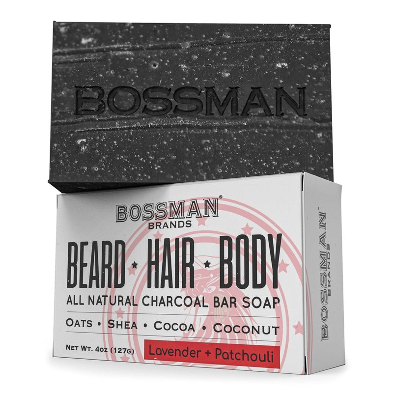Bossman Men's Bar Soap 4 in 1 Beard Wash, Shampoo, Body Wash and Conditioner, 4 oz