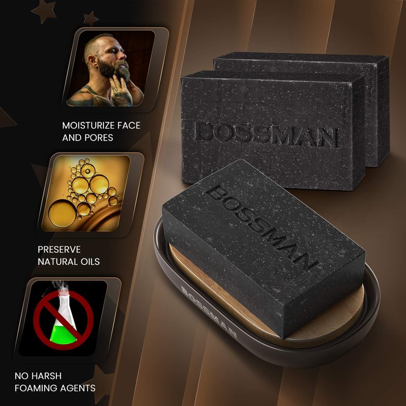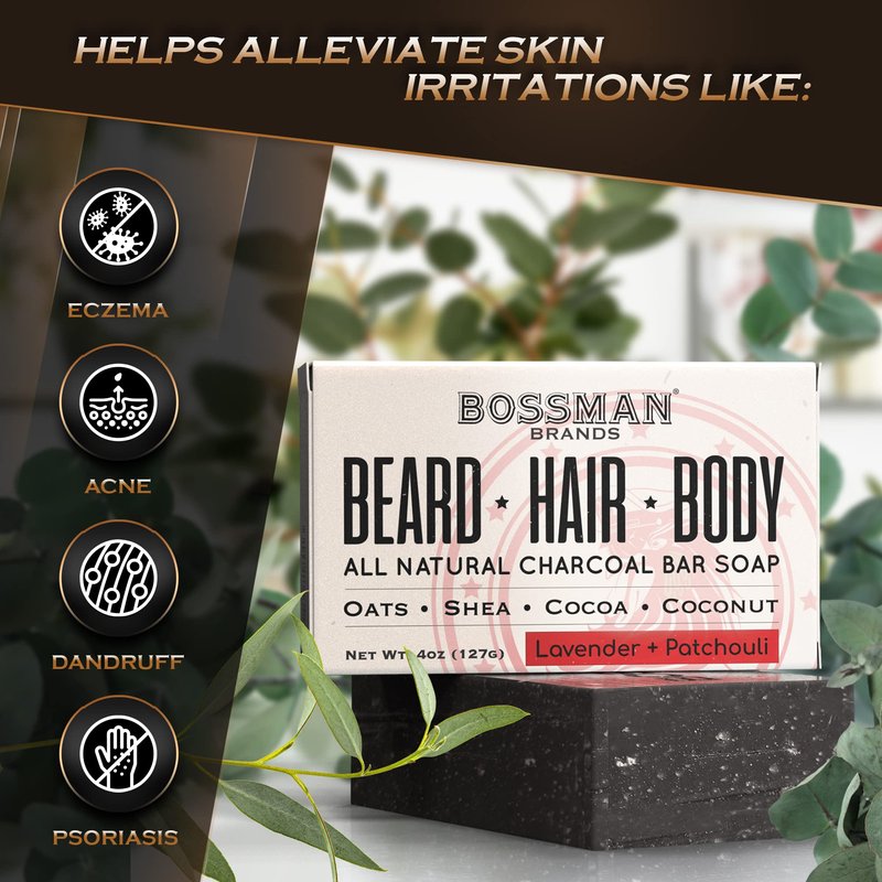 - Signature Bossman Scent Made from Essential Oils: Our beard shampoo and mens bar soap is infused with just the right touch of carefully selected essential oils like geranium, lavender, vanilla, rosemary, and patchouli. It creates a manly scent that's clean, yet seductive and perfect for close encounters