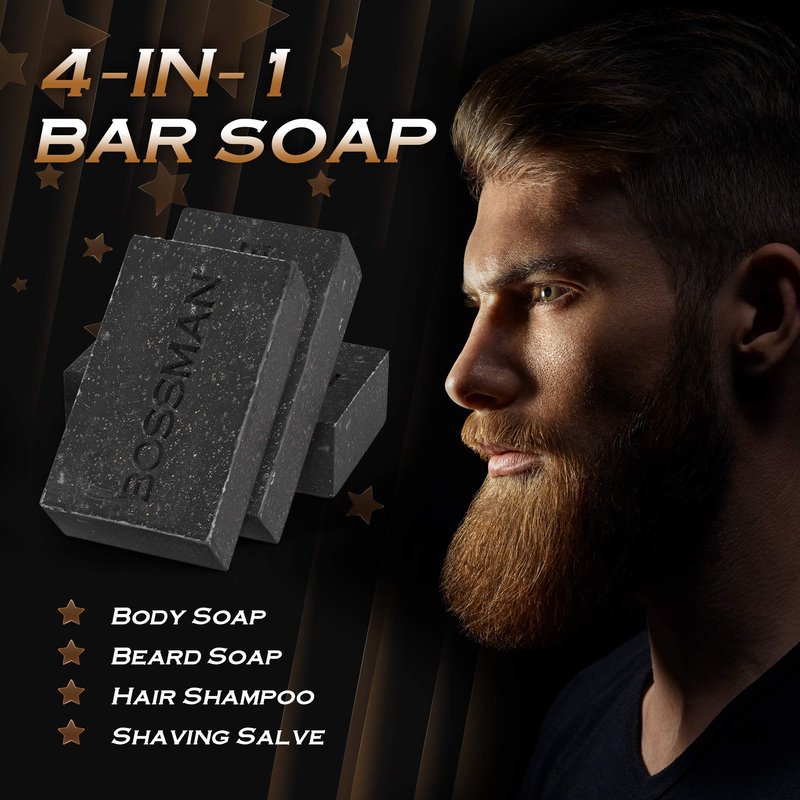 - Organic Oils Moisturize Your Beard, Hair, and Skin: Our 4 in 1 bar soap for men is infused with a masterful blend of organic moisturizing agents like coconut oil, shea butter, and palm oil. The organic oils in our mens soap will clean, nourish, and strengthen your hair, face, and skin. It also works great as a men's shaving soap